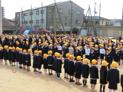 4月9日(火)始業前、入学したばかりの1年生74名と2年生から6年生在校生440名との「対面式」を行いました。初めて長吉小学校の全児童が顔を合わせ、あたたかな出会いがありました。