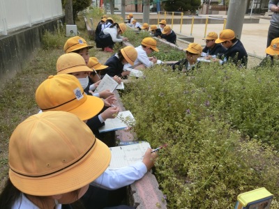 4月17日(水)5限、4年生は理科の授業で「季節と生き物のようす」の観察をしました。