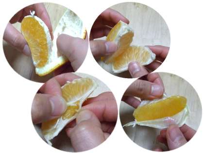 今日は6年生が遠足なので、1年生は準備から片付けまですべて自分たちでしました。あまなつかんは、皮をむいて食べないといけません。担任の先生に皮のむき方を教えてもらって、みんな上手にむいていました。