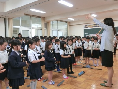 4月23日(火)2限、3年生は多目的室で「リコーダー先生の授業」がありました。3年生からリコーダーを使い始めます。