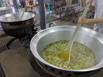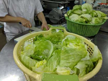 レタスは、涼しい気候を好みます。日本では産地や栽培方法を変えて一年中出回っています。春は茨城や兵庫などの都市近郊、夏は長野や群馬などの高冷地、冬は静岡や香川などの比較的温暖な地域で栽培されています。給食では、4月と5月にレタスを使用します。スープはレタスのシャキシャキとした食感をいかすために、最後に加えてさっと加熱します。