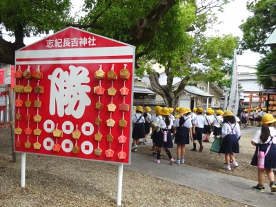 5月29日(水)1限、2年生は第1回町たんけんで、校下にある「志紀長吉神社」へ行きました。