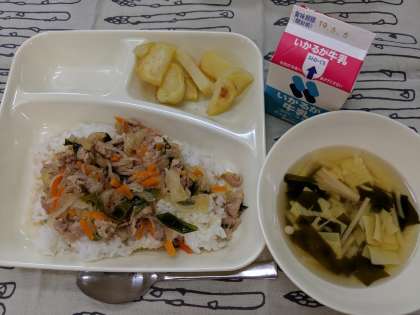 5月31日(金)のこんだては「豚丼、湯葉のすまし汁、焼きじゃが、牛乳」です。