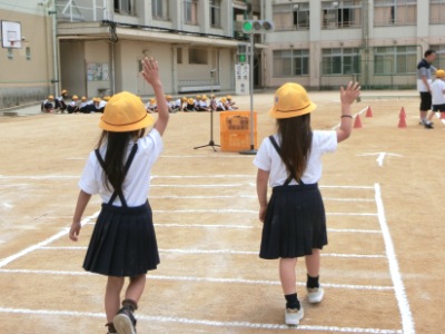 5月31日(金)2限、平野警察署の方に来ていただいて、1年生は交通安全教室「安全な歩行の仕方」を行いました。