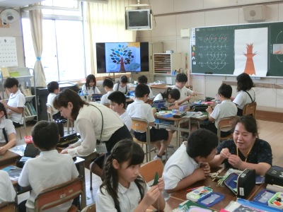 5年生全クラスのの1・2限は、各教室で家庭科の「はじめてのソーイング」の授業でした。