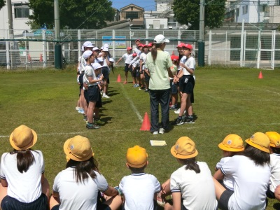 3限は「りす」の2年生と4年生が、4限は「ぞう」の3年生と5年生の試合が行われました。4・5年生は利き腕の反対か両手で投げるというルールです。どのチームも上の学年の児童がボールを受けて、下の学年の児童にボールを渡して投げさせており、微笑ましく感じました。