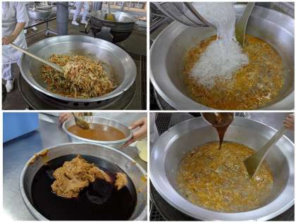 マーボーはるさめは、しょうがとトウバンジャンを香りよくいため、ひき肉と野菜をいためた後、ゆでて戻したはるさめを加え、しょうゆ、砂糖、みそなどを合わせた調味料で味つけします。ごはんのすすむこんだてでした。