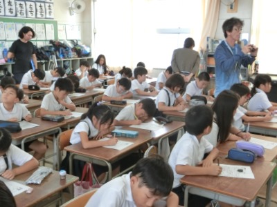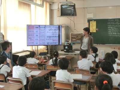 6月に学習をした中国のあいさつや小学校の様子について、復習をしました。中国と日本の小学生の生活の違いをワークシートに書いて、発表しました。そして、7月18日に校区にある「日本語アカデミー」の学生さんと交流する「ミャンマー」の国や小学生の生活について学習をしました。来週の交流会が楽しみです。