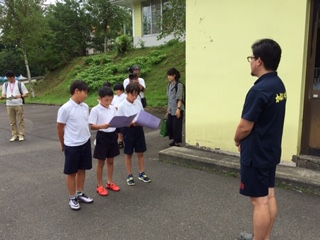 11時50分、宿舎前で「開舎式」を行いました。児童代表から宿舎の方にあいさつを行いました。3日間、お世話になります。
