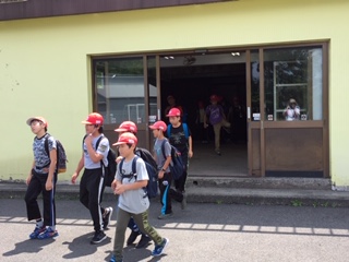12時50分、宿舎の各部屋に荷物を運びました。入室後、登山の服装に着替えて部屋で待機していました。13時、「避難訓練」の放送があり、宿舎前に集合しました。
