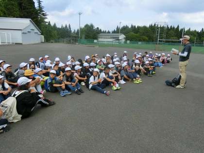 16時20分、最後の児童が「高坪山」から下山しました。宿舎前でオレンジジュースをもらって、しばしの休憩をしました。