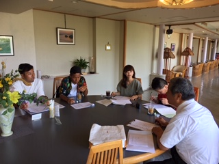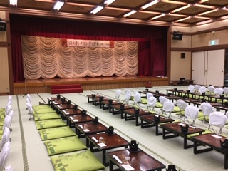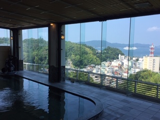 13時30分、鳥羽市扇野里にある宿泊先の「扇芳閣」(せんぽうかく)を訪れました。一昨年から利用しているホテルで、鳥羽湾の海が一望できます。早速、展望大浴場や食事場所、泊まる部屋などの確認をしました。その後、係の方と打合わせを行いました。