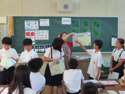 講師の税理士さんから、消費税や所得税などの身近な税について、種類や使われ方を分かりやすくお話していただきました。その後、「町をつくろう!」のワークシートで税の役割や使い道について学習しました。最後に「マリンとヤマトの不思議な日曜日」のDVDを見ました。私たちが豊かでより良い生活を送るために、税は大切なものということを学びました。