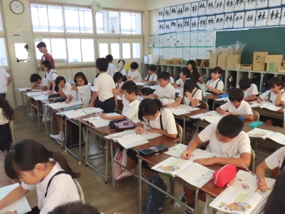9月4日(水)3限、4年生では道徳「わたしたちの学級や学校」の校内研究授業がありました。教材は、教科書の「交かんメール」です。