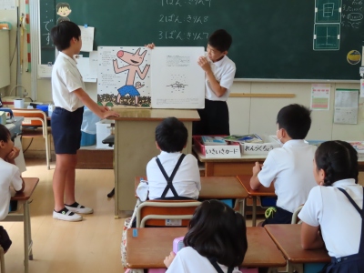 11月7日(木)開催の「なかよしフェスタ」に向けて、どんなお店にするのか話し合いを行いました。ボーリングや宝さがし、射的をするお店など、いろいろな意見がでて、決まったようです。早く話し合いが終わったクラスでは、6年生が大型絵本の読み聞かせを行っていました。