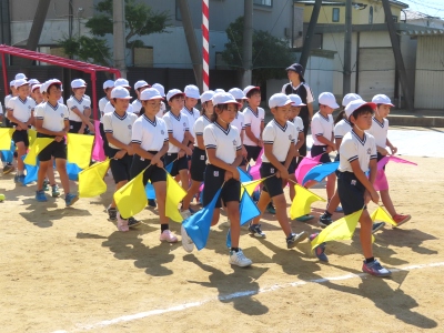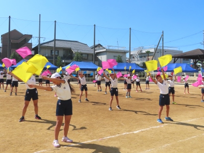 9月26日(木)2限、夏日の中、4年生は団体演技「エール&サンクス」の練習をしました。
