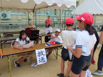 9月27日(金)放課後、曇り空の下、明後日の「運動会」の準備を行いました。6年生の児童が、グランド整備や競技準備物の用意のあと、応援団長と放送委員の児童は、最終のリハーサルを行いました。掲示やライン引きも済ませ、準備万端整いました。