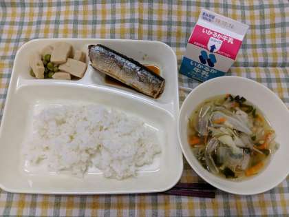 10月8日(火)のこんだては「さんまのさんしょう焼き、すまし汁、高野どうふの煮もの、ごはん、牛乳」です。
