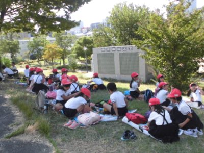 5階のやってみる階では、科学や自然、文化体験など、たくさんのコーナーで思う存分体験をしました。4階のあそぼう階の「こどもの街」では、思いっきり体を使って遊びました。お昼になり、「扇町公園」でお弁当を食べ、複合遊具でたっぷりと遊びました。お天気にも恵まれ、遊びまわった秋の遠足になりました。