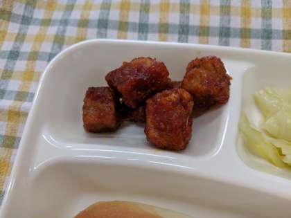 しょうが汁で下味をつけたまぐろに、でんぷんをまぶして油で揚げ、タレをからめます。オーロラ煮のタレは、ケチャップ、砂糖、赤みそをおよそ3:2:1の割合で合わせて作ります。お弁当のおかずにもおすすめです。