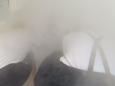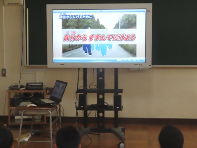 10月15日(火)3限、5年生の「防災学習」は、多目的室で「津波からにげる」のDVDを見ました。そして、2年生と同様に「煙体験」をしました。煙の速さは毎秒1mで、火災が発生したとき、煙で命を失う危険性は非常に高いということです。テントの中【写真中】は真っ白で何も見えませんでした。