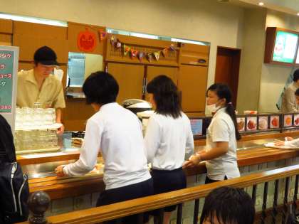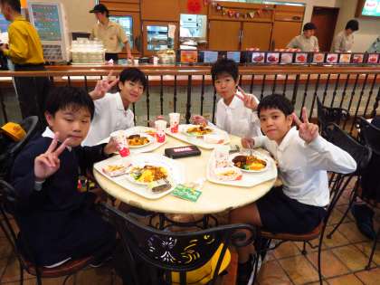午後になって、活動班ごとで好みのレストランで昼食をとっていました。