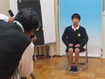 午前中は、多目的室にミニスタジオをつくり、業者の方による写真撮影です。一人ずつの個人写真撮影のため、いくぶん緊張した面持ちでしたが、カメラマンの話術で、笑顔になって撮影できました。各クラスの学級写真も校庭や教室などで撮影しました。午後からは委員会活動の写真撮影を行いました。来週はグループやクラブ活動の写真撮影をする予定です。