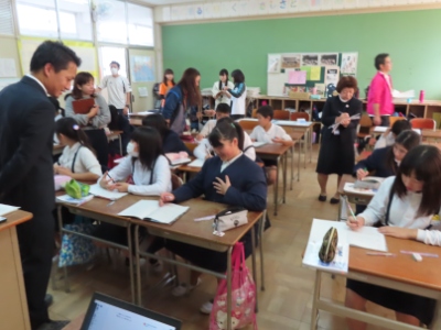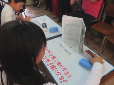 11月7日(木)5限、6年生では算数科の習熟度別少人数の公開授業がありました。単元は「比例をくわしく調べよう」です。