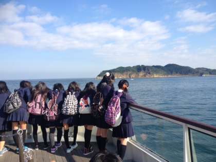 閉舎式を終え、遊覧船に乗って鳥羽水族館に向かいます。