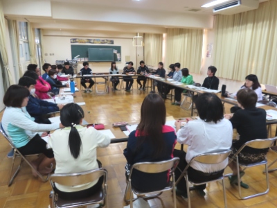 子どもと担任の先生で一場面を役割演技【写真左】し、理解を深めました。かずやくんの涙を見て、「ぼく」はどう思ったのかから、誰とでも仲よくするためにどうしたらいいのかを考えました。学習を通して、自分たちの生活について考える45分間になりました。放課後は、教育センター教育指導員の先生に入っていただき、研究討議会を行いました。
