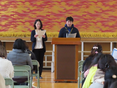 担当の先生からは、入学に向けて準備していただくものや学校徴収金金について説明をしました。PTA役員さんからは、会費や見守り活動について、いきいき指導員さんからは、いきいき活動について説明がありました。令和2年度入学式は、4月7日(火)10時です。