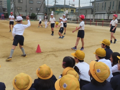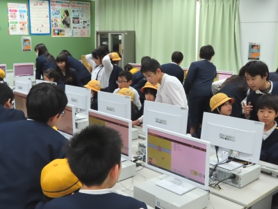 今日は、3年生の児童はクラス毎に教室を出発し、運動場で活動するボール運動部【写真左】やバスケットボール部【写真右】、北グランドのサッカー部を見学しました。パソコンクラブ【写真中】では、3年生がゲームで学ぶプログラミングを教えてもらいました。来週の2回目の見学会を終えて、自分の入りたいクラブを決めていきます。
