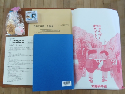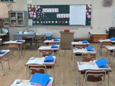 4月11日(土)、明日から3日間は、教科書給与・学習課題等の配付日になっています。全学年の教室では昨日までに、準備を整えました。新1年生は入学式に渡す予定だった教科書やPTAからのお祝いのファイルとクッキーも用意しています。