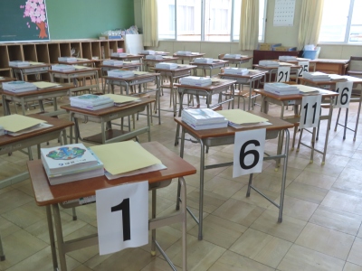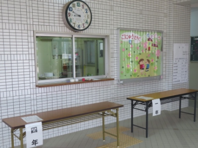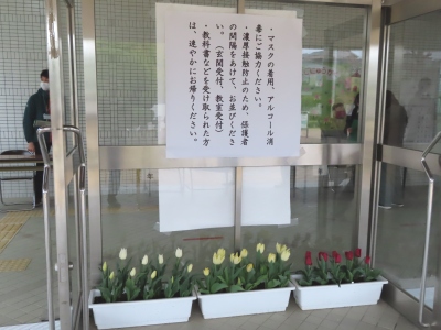 4月12日(日)、今日は日曜日ですが、教職員は全員出勤し、教科書・学習課題等の配付を行います。雨のため、急きょ受付場所等を変更しました。玄関(1年・4〜6年)・エレベーター前(2・3年)の受付で、組分けを聞いていただき、各学年の教室へお越しください。担任より教科書・学習課題等をお渡しいたします。