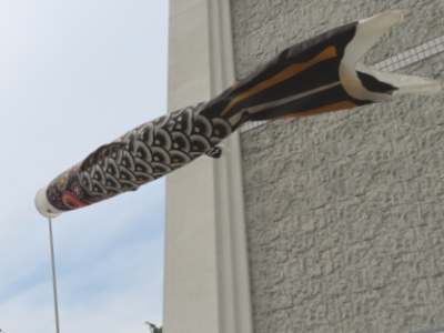 4月15日(水)の今日、玄関に「鯉のぼり」を揚げました。「こどもの日」にあわせて揚げるのは、今年で3回目になります。右の写真は昨年の鯉のぼりですが、今年のは少し元気がないように見えます。