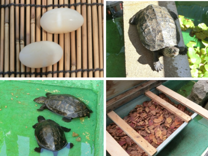 これまで鳥小屋で飼っていたときは、冬眠支度はしていませんでした。平成30年12月上旬、落ち葉や土で冬眠する場所をつくりました。カメは変温動物のため、自分体温調節ができません。気温が10度以下になると休眠状態に入り、過酷な冬を乗り越えました。