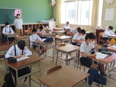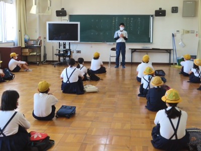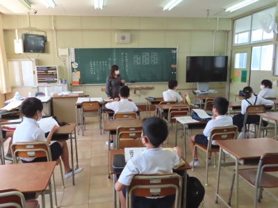 5月13日(水)、6年生は登校したら多目的室【写真中】に集まりました。最初に担任紹介を行い、この一年間の活動等についてお話がありました。1クラスを14人の2分割にし、1組と2組の教室に分かれて、学習課題等の提出をしました。