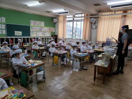 「給食時間」は、新型コロナウイルス感染症対策のため、前を向いてできるだけ、静かに食べる時間になっています。ようやく、全員で給食を食べることに慣れ、よく食べることができるようになってきたようです。