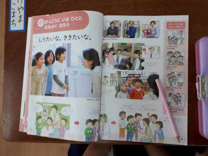 「アンパンマンになるには?」という質問は、入学式で校長先生が「アンパンマンのように、困った人を見たら助けてあげられる優しい心をもった正義の味方になってほしい」と話されたからです。この単元では、学校ではたくさんの人に学校生活を支えられていることも学習します。