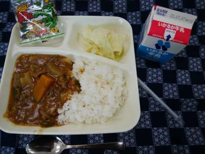 7月1日(水)のこんだては、「夏野菜のカレーライス、キャベツのサラダ、豆こんぶ」です。