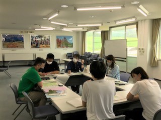 10時30分、雨の中、奈良県の「曽爾高原」に到着しました。宿舎となる「国立曽爾青少年自然の家」の研修室で、職員の方と綿密な打合せを行っています。