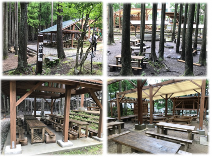 屋外の「野外炊飯場」【写真下】は、林の中に設けられており、大自然の中での調理になりそうです。本番では、2日目の昼食に野外炊飯を行う予定です。
