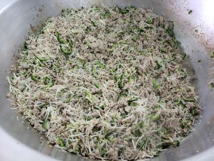「ゴーヤチャンプルー」は、沖縄料理でゴーヤ(にがうり)を使用しています。食べる前に小袋のかつおぶしをかけることで、風味とうま味を添えています。ゴーヤ(にがうり)がにがてな児童もいましたが、よく食べてくれていました。おいしくいただきました。