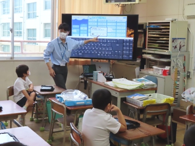 7月14日(火)3限、2年生はタブレットPCの「カメラ機能」を学習しました。今日は、大阪市教育センターから派遣されたICT支援員さんも教室に入ってもらいました。