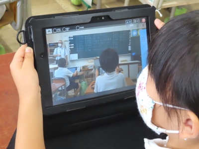 最初にタブレットPCの操作で「タップ、ダブルタップ」を習い、IDを入れてログインをしました。カメラ機能を使って、写真撮影をし、保存をするところまでの学習です。廊下に出て、生活科で飼育している「ザリガニ」をアップで撮影しました。いろいろな角度から撮っており、迫力のある画像もありました。