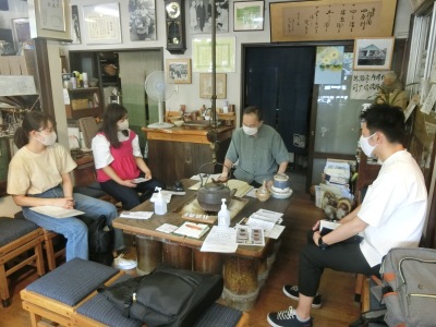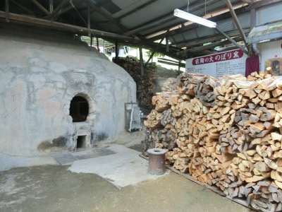 13時30分に滋賀県信楽「宗陶苑」(そうとうえん)に到着しました。昨年度から行くことになった信楽焼きの窯元で、陶芸の実習を行います。早速打ち合わせをして、日本最大規模を誇る11室の「のぼり窯」を案内してもらいました。8月20日の窯たきに向けて、火袋付近【写真中】には赤松の薪が300束置かれていました。約10,000点の作品を窯づめ【写真右】している様子も見学できました。