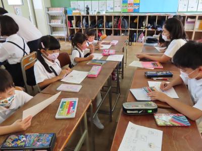 8月5日(水)2限、今年度になって初めての「なかよしタイム」でした。キリングループの6年生と1年生のペア学年は、それぞれの教室に移動し、グループ編成をしました。