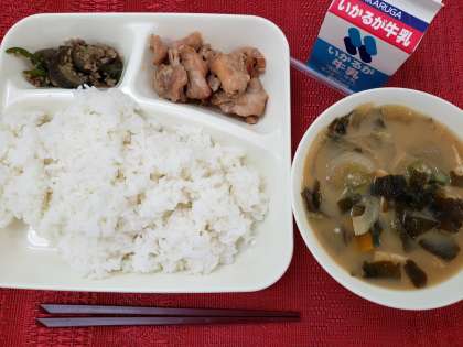 9月4日(金)のこんだては、「ごはん、鶏肉のてりやき、みそ汁、なすのそぼろいやめ、牛乳」です。