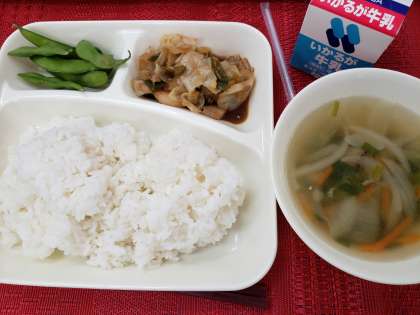 9月10日(木)のこんだては、「ごはん、ホイコーロー、中華スープ、えだまめ、牛乳」です。
