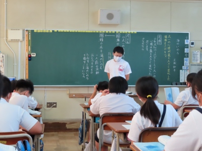 9月11日(金)4限、6年2組では国語科「海のいのち」(立松和平作)の学習でした。本教材は、海に生まれた少年「太一」が、父や与吉じいさの死を乗り越え、村一番の漁師に成長する姿を描いた作品です。本時の目標は、「太一の心情が最も大きく変化した場面をさがそう」です。